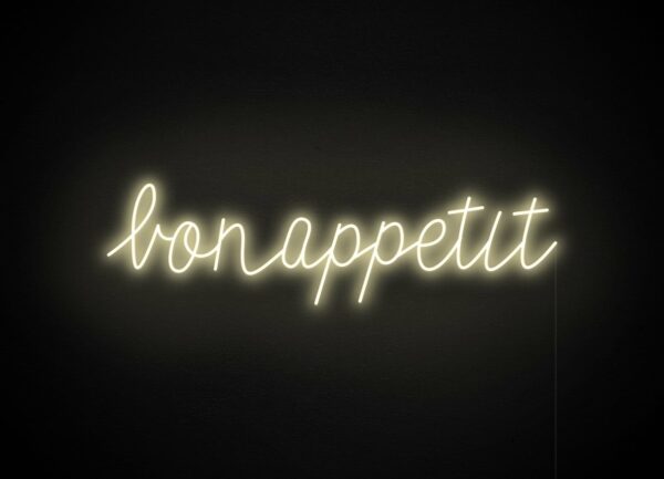 Shake up any kitchen or dining space with this lovely “bon appetit” neon sign! This yummy LED light is a great way to bring style and flair to an entertaining situation. Written in beautiful cursive, this bon appetit sign is sure to make for a great dinner conversation.