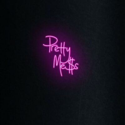 Check out our Pretty Mess LED neon sign. It displays the word “Pretty Mess” in a beautiful cursive font and features a dollar sign all lit using vibrant pink LED bulbs.